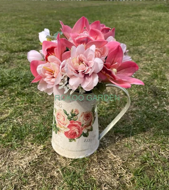 Materiál: Kvalitní textilní a plastové květiny, plechový dekorativní džbánek.
