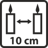 Bezpečný rozestup: Mezi hořícími svíčkami ponechte alespoň 10 cm volného prostoru. Při menší vzdálenosti teplota stoupá, svíčky mohou kapat a držák může prasknout.