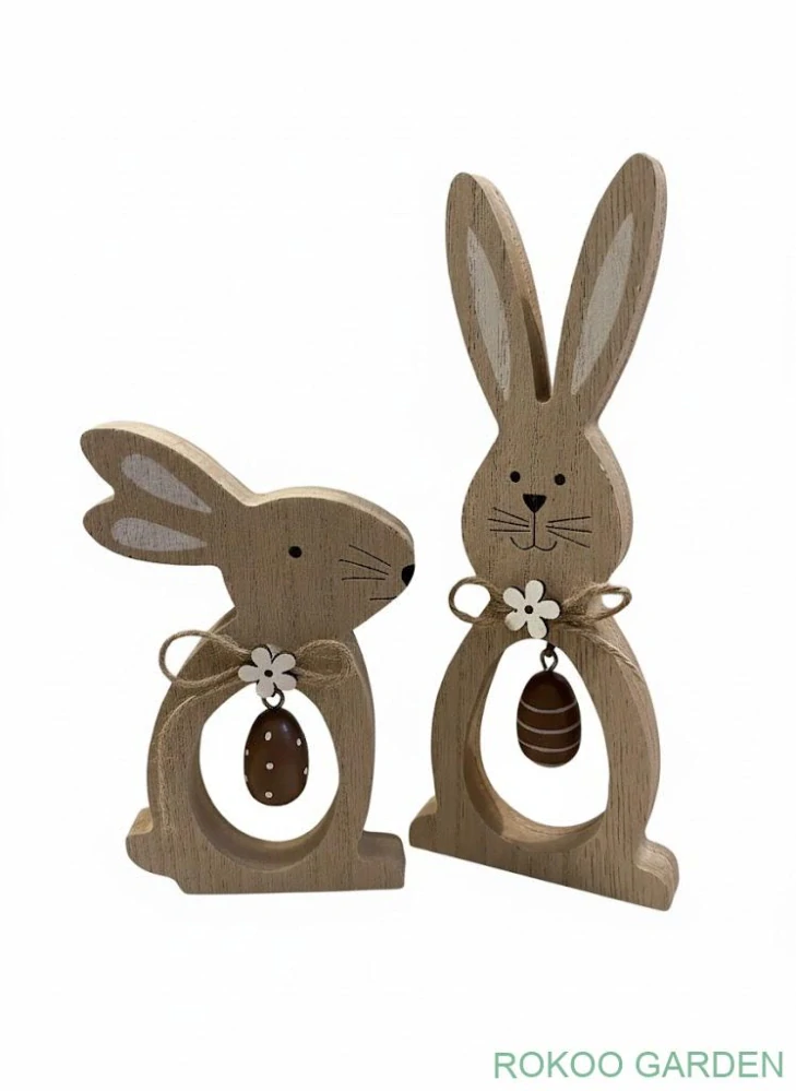 Lehký a odolný materiál: Králíčci jsou vyrobeni z materiálu na bázi dřeva, což jim zajišťuje lehkost a snadnou manipulaci při zdobení.